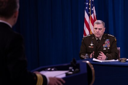 Pentagon - Army Gen. Mark A. Milley, chairman of the Joint Chiefs of Staff, answers questions from service members, DOD civilians and family members regarding the department’s policies on COVID-19 during a virtual global town hall at the Pentagon, May 28, 2020.